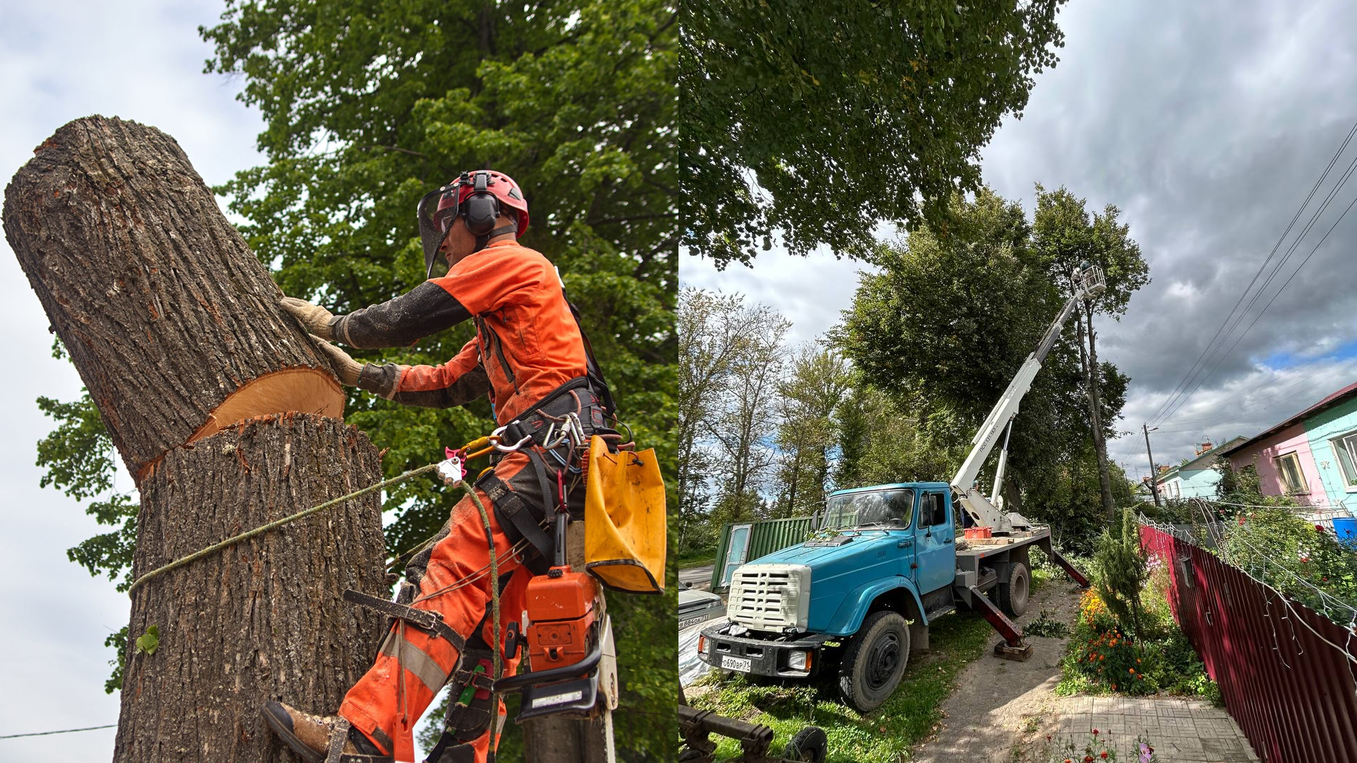 «Спилили аварийный тополь у проводов альпинистским методом. Приехали на следующий день после звонка. Профессионалы — работали аккуратно, не задели крышу.»